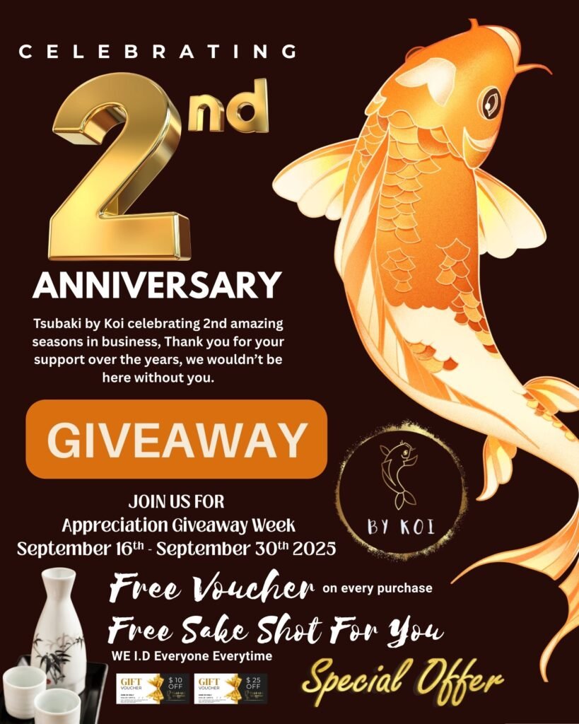 Please take a time to leave a feedback on how we did. At Tsubaki by KOI, Every dining moment matters. Your feedback helps us elevate each experience. Share your thoughts; They’re invaluable to our pursuit of excellence.