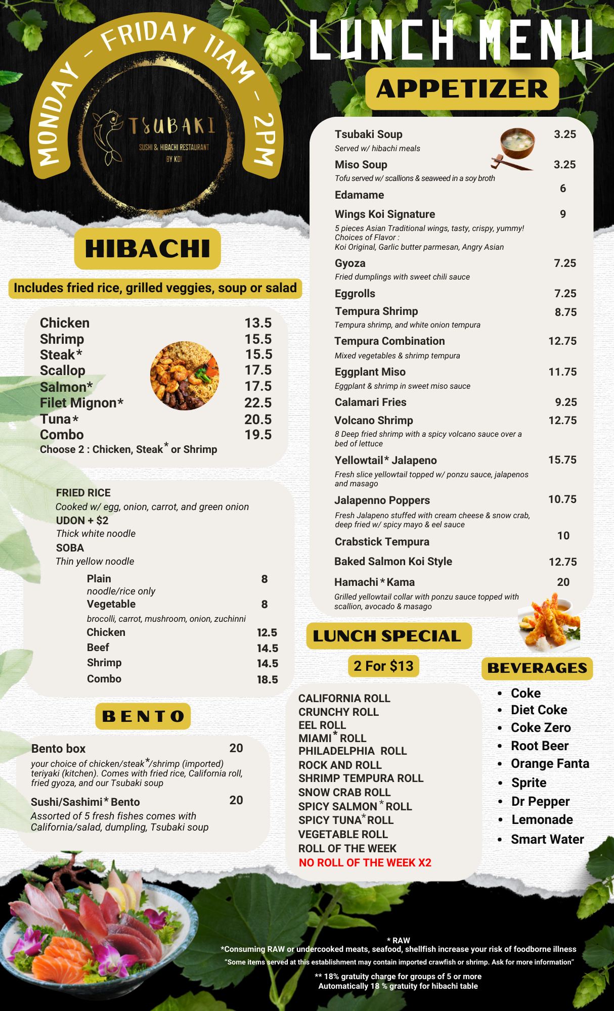 * RAW – Consuming raw or undercooked meats, seafood, shellfish, will increase your foodborne illness.